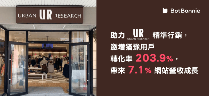 品牌案例 URBAN RESEARCH 精準行銷,激增猶豫用戶轉化率 203.9%,帶來 7.1% 網站營收成長|成功案例 by tina.chien Posted on 2025-01-062025-01-06 Read More