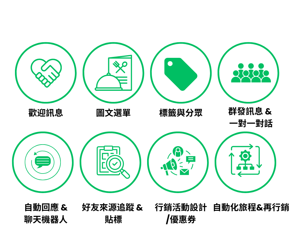 設計歡迎訊息、圖文選單、FAQ,讓顧客一進來就能快速找到所需資訊。 - 建立標籤與分眾邏輯
