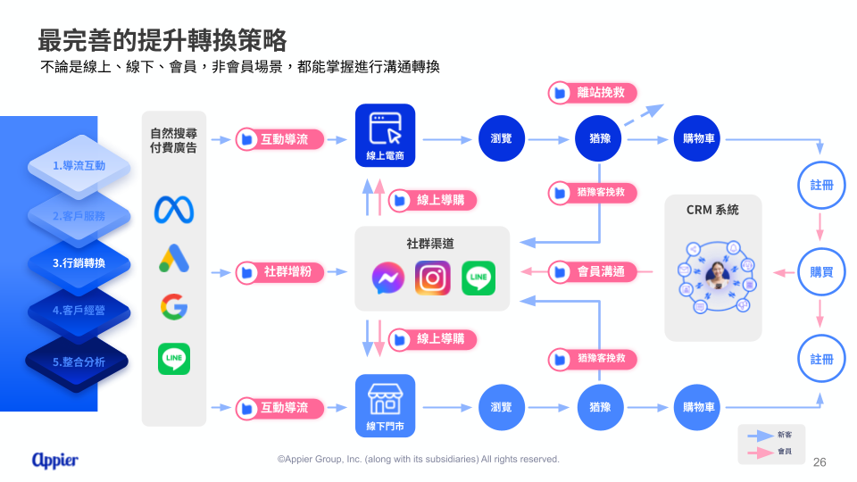 - 根據清晰的用戶輪廓,進行高度客製化的溝通。